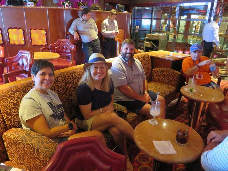 There was plenty of entertainment and activities aboard ship to keep our members busy during the first three nights and two days at sea. During the first full day at sea the USS Grant Association sponsored an open-bar happy hour with hot finger food, which was attended and enjoyed by all USS Grant hands. Then each USS Grant stateroom received a $25 bonus from the USS Grant Association. The happy hour and stateroom bonus was a result of the number of staterooms we had booked on the cruise and a credit from the cruise line was given to the Association, which the Association decided to pass-on to the shipmates. On the second full day at sea the ship held a ‘Veteran Appreciation’ show, which was well attended by our submarine sailors. The ship also held the first of their two scheduled formal dinners during this period.